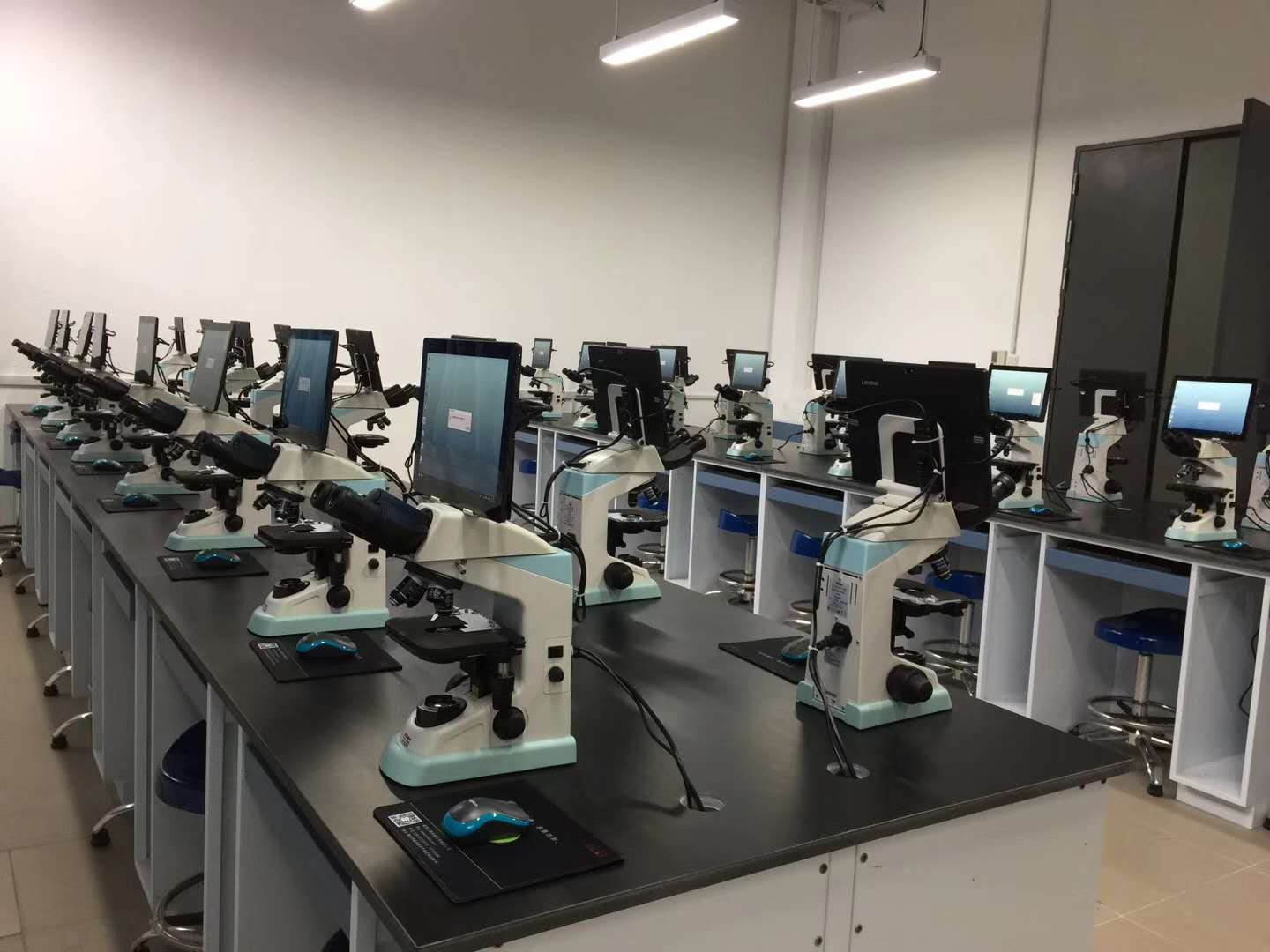 医学形态学数码互动教室是一种师生互动、图像共享、高效准确的教学系统。通过无线局域网信号将学生端服务器与教师端服务器连接,实现显微镜切片标本图像准确示教,并使师生之间建立良好的双向沟通渠道;图片的实时拍摄和处理,满足了同学的复习要求,并且有利于丰富教学电子资源;便捷的作业下发和作业收集功能,使得作业无纸化,高效环保。组织学和病理学数字切片库目前有组织学切片100余种,病理学切 片100余种,病理学大体资源100余件,可以通过校内网随时随地访问,满足师生预习复习的要求,使得课堂教学更加高效便捷。