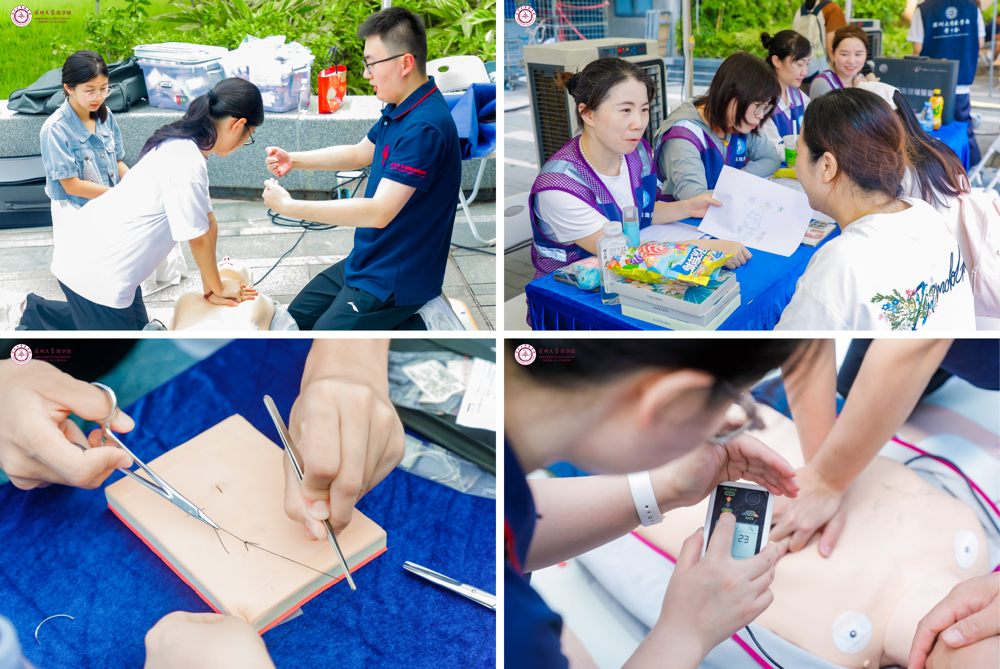 活动现场,三大医院特色摊位大施拳脚,以不同形式与角度展现医学人文的多元魅力:华南医院以沉浸式急诊急救体验传递生命救援的紧迫感,罗湖区人民医院借“房树人”心理绘画与助产士视角解码母婴健康的科学与温情,南山区人民医院则以显微缝合技艺展示外科医生的精益求精。各摊位通过场景化互动与专业科普,将急救知识、生命教育、医学匠心融入趣味体验,在传递医学温度的同时,彰显深医人“慈心仁术”的精神底色。